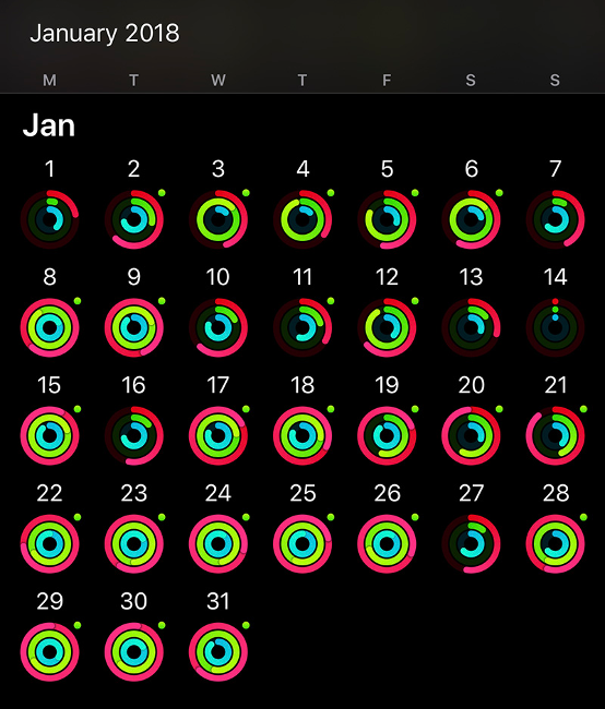 This is a clue that this is not a good metric. If people are finding ways to beat the metric, it can’t be good. And check out this example of Apple’s rings – note that it’s not our data and apparently this person hasn’t quite mastered Stand (the blue one) either.